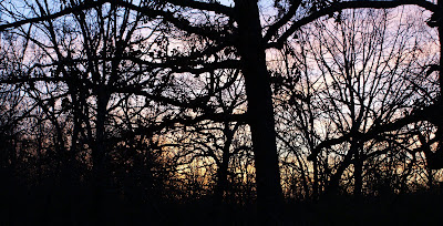 (The sun sinking just above the barn at Quill Cottage)